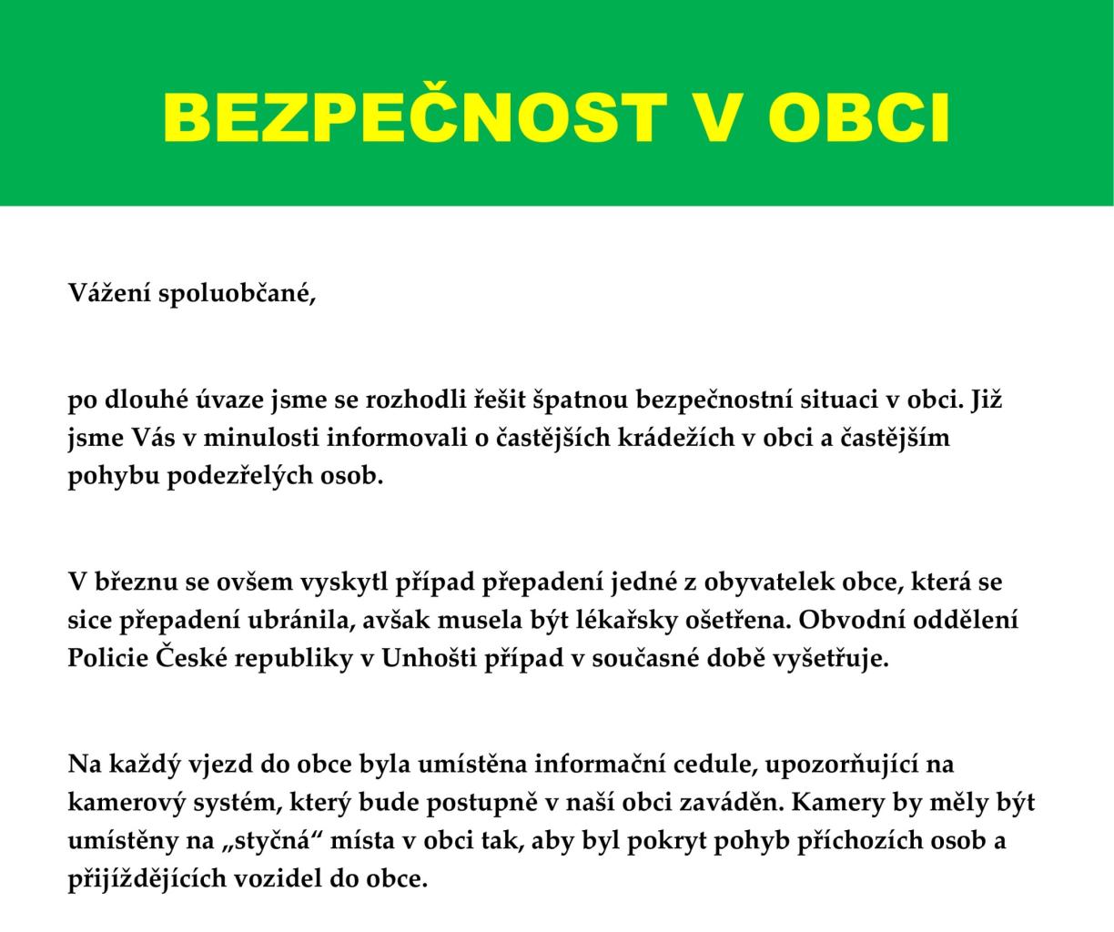 Informace o bezpečnosti v obci.