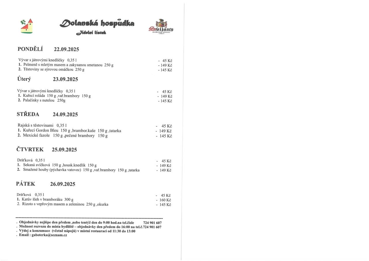Aktuality - Jídelní lístek 22. 9. - 26. 9. 2025