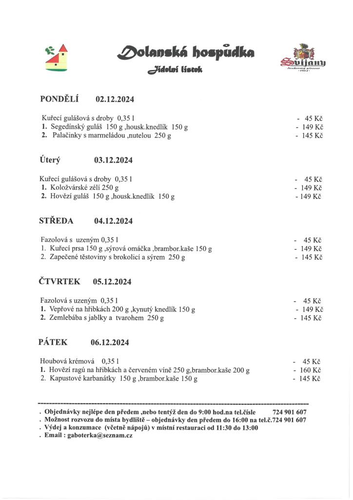 Aktuality - Jídelní lístek od 2. 12. 2024