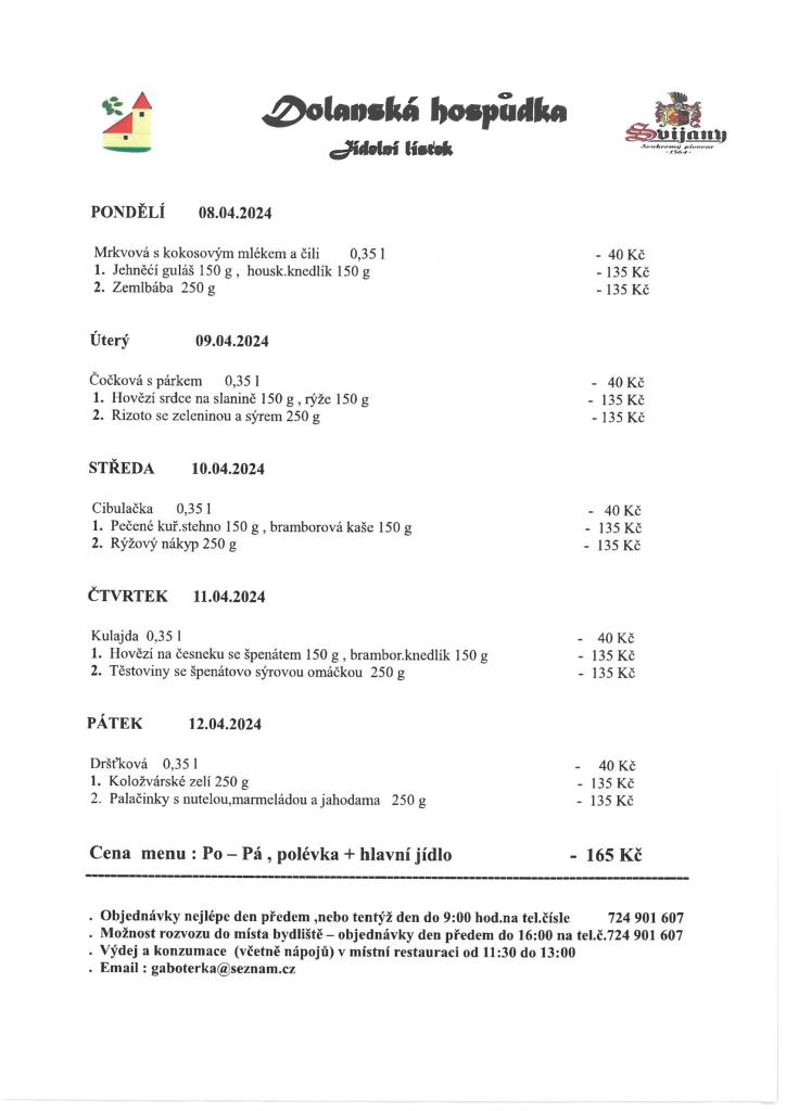 Aktuality - Jídelní lístek od 8.4. do 12.4.2024
