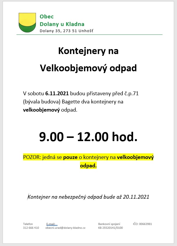 sobota 6.11.2021 v době od 9.00 do 12.00 hod.