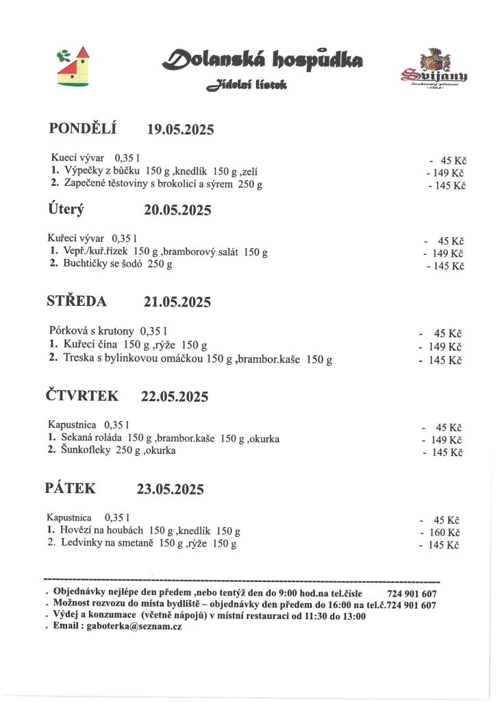 Jídelní lístek 19. 5. - 23. 5. 2025