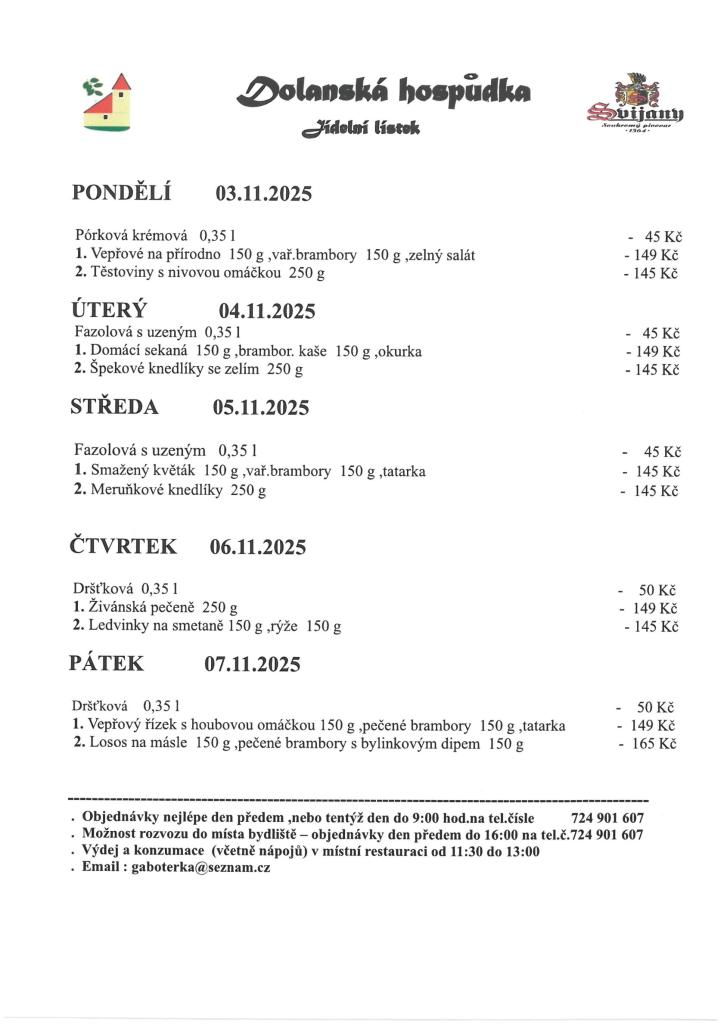 Jídelní lístek 3. 11. - 7. 11. 2025