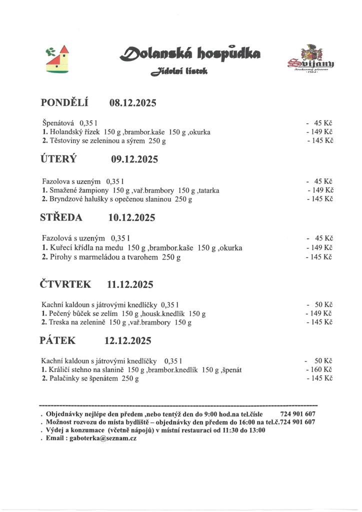 Jídelní lístek 8. 12. - 12. 12. 2025