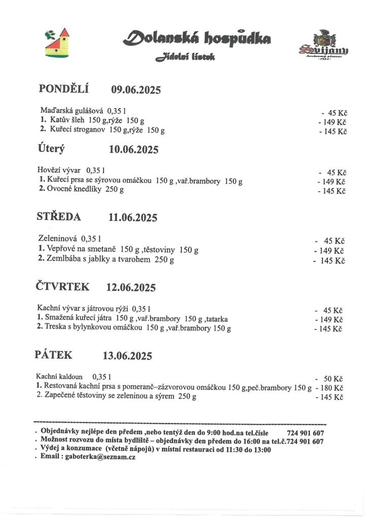 Jídelní lístek 9. 6. - 13. 6. 2025