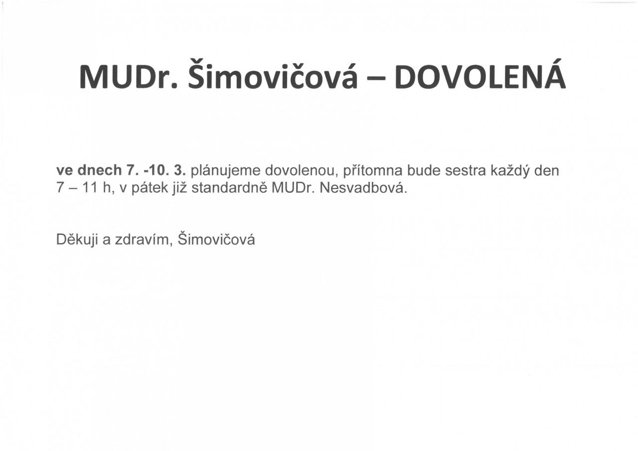 MUDr. Šimovičová - DOVOLENÁ