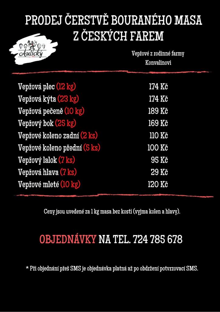 objednat do úterý telefonicky 731755634, emailem obecni.urad@dolany-kladno.cz, nebo vhozením do poštovní schránky. Můžete objednávat i přímo v řeznictví.