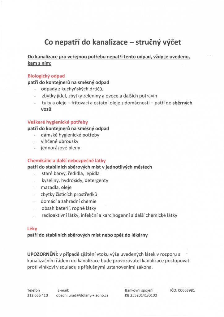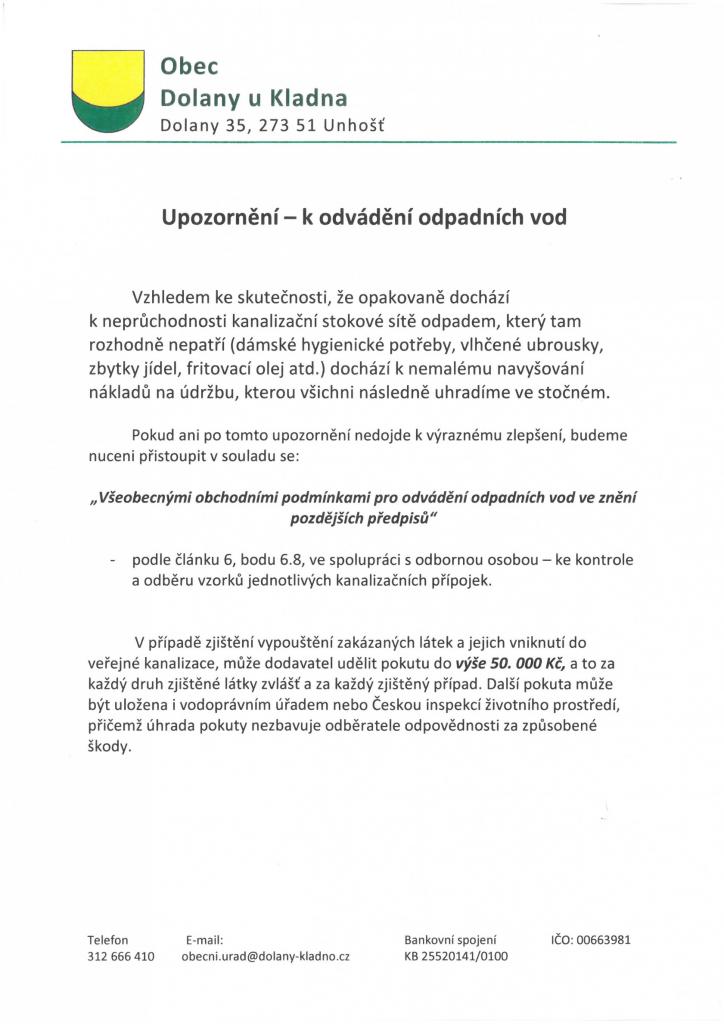 UPOZORNĚNÍ - k odvádění odpadních vod